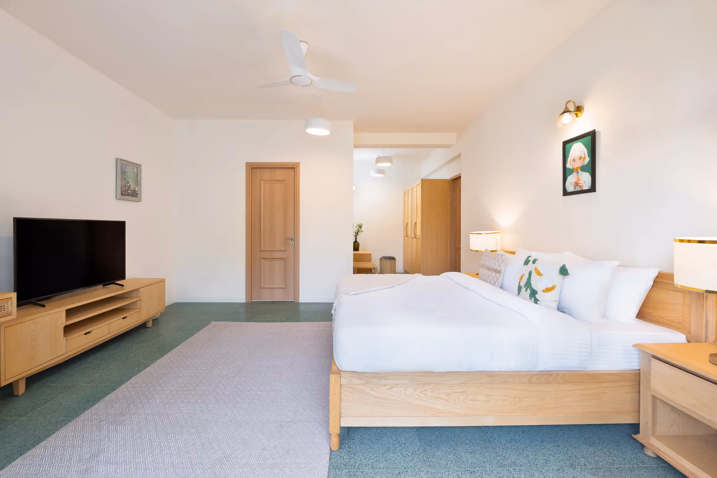 Mayberry features three thoughtfully designed bedrooms, each crafted as a serene private retreat. With plush bedding, warm ambient lighting, and tasteful décor, every bedroom ensures restful comfort.